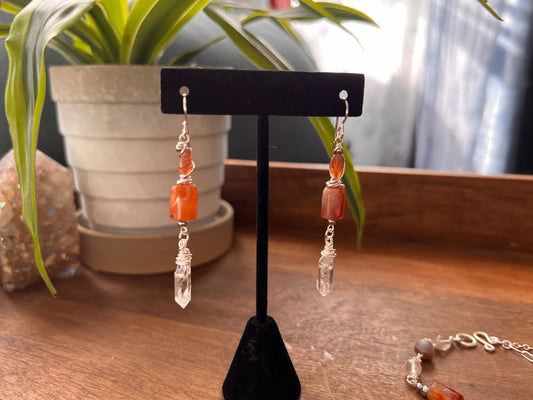 Botswana Agate and Tibetan Quartz Dangle Earrings