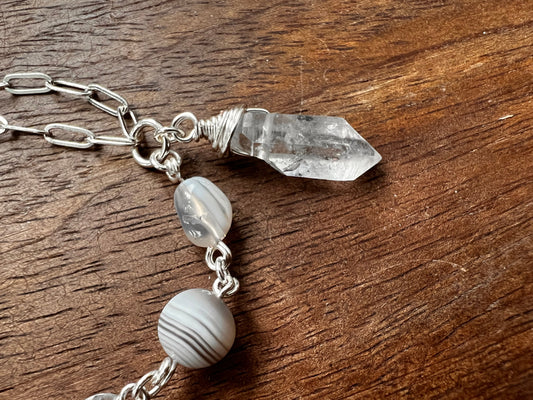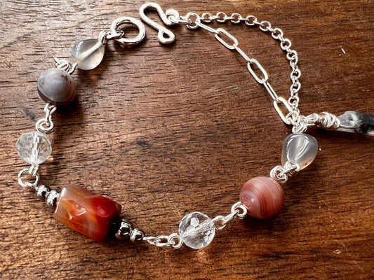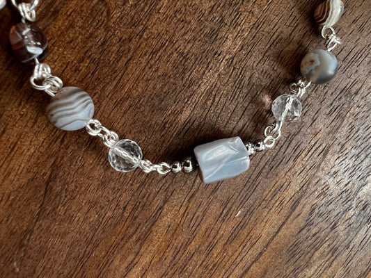 Botswana Agate and Tibetan Quartz Bracelet
