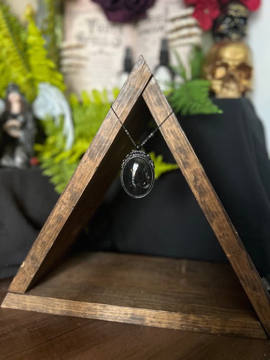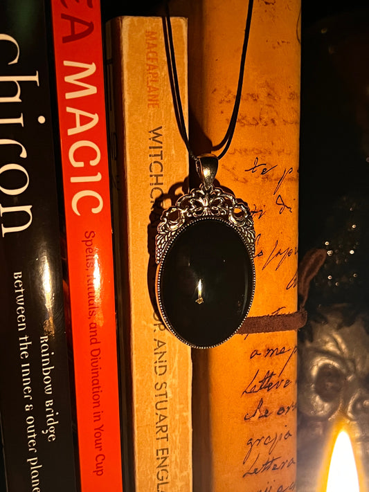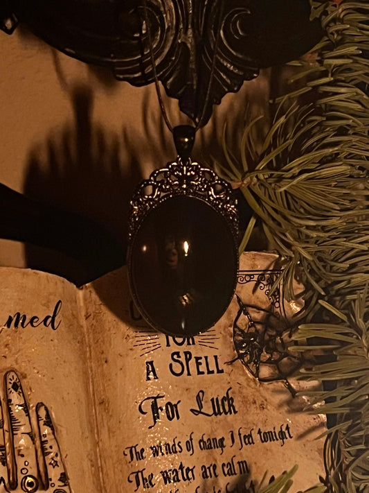 Black Obsidian Scrying Mirror Pendant Witches Magick Gothic Victorian Mirror Necklace PN6