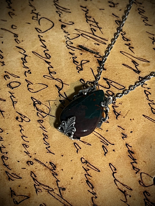 Bloodstone Victorian Wrapped Pendant Necklace PN16