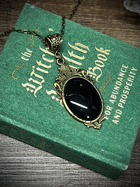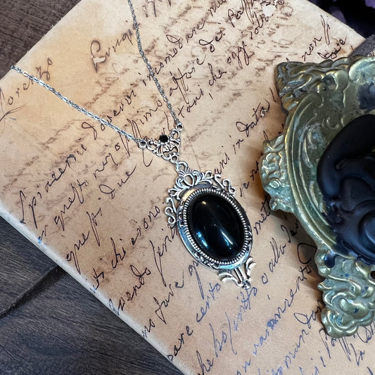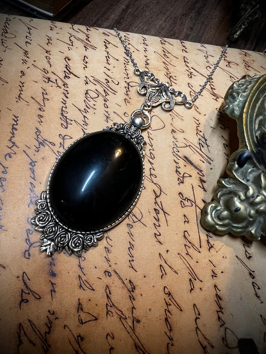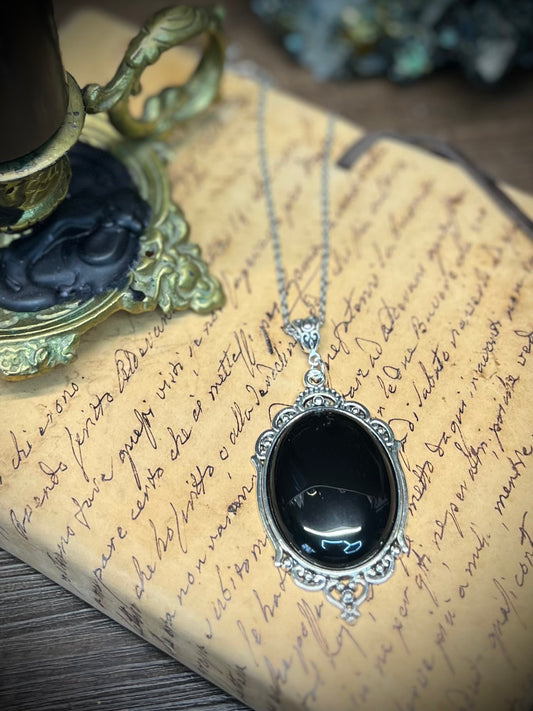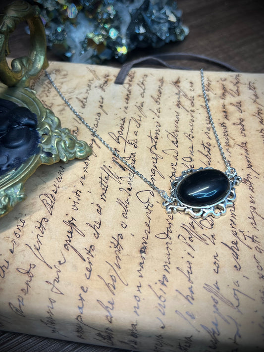 Obsidian Scrying Mirror Pendant Necklace Magick Gothic Victorian Mirror Necklace PN9