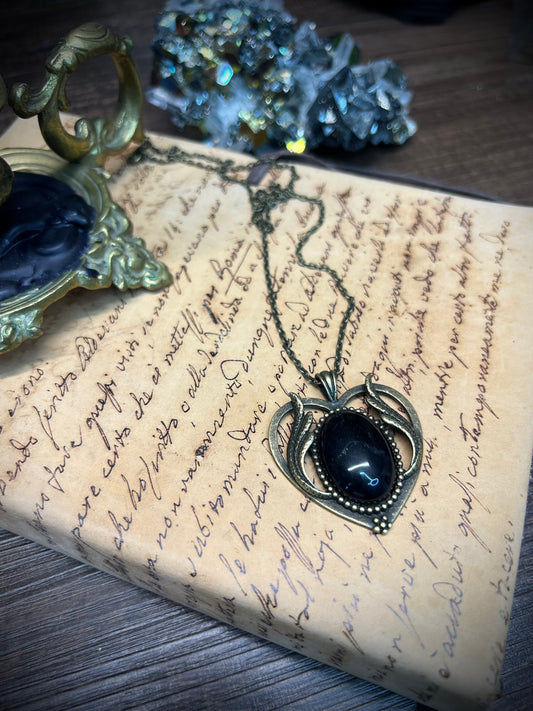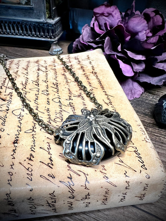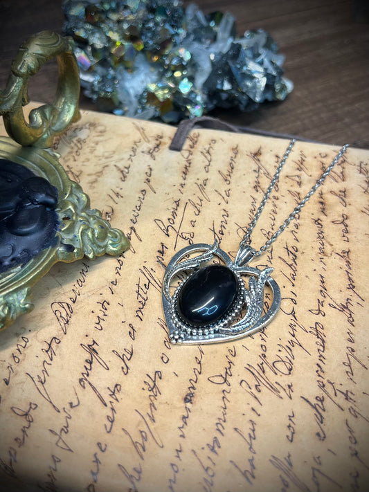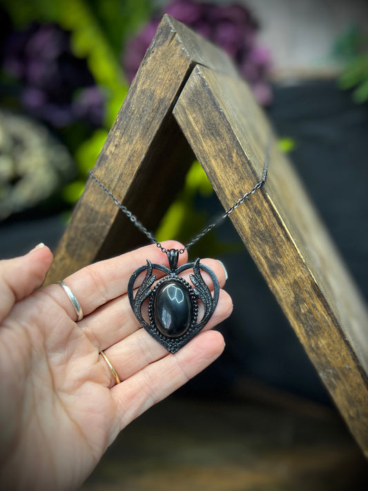Obsidian Youβre Protected Vintage Faery Wrapped Pendant Necklace PN18