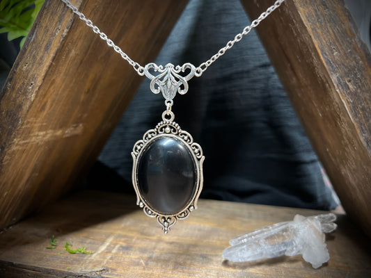 Obsidian Pendant Scrying Necklace 20β Chain PN5