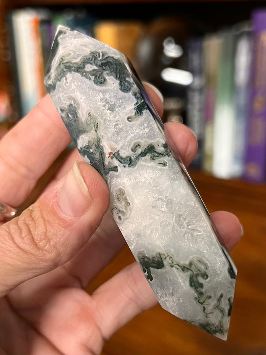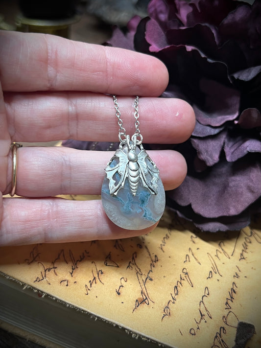 Moss Agate Victorian Moth Wrapped Pendant Necklace PN20