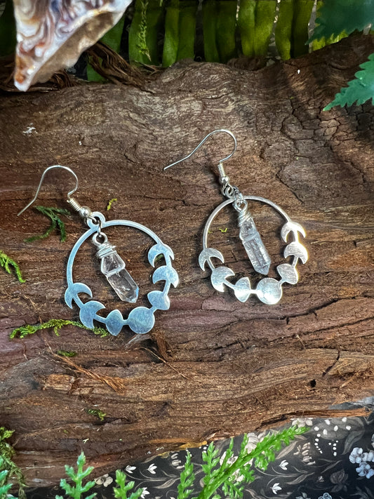 Moon Phase Earrings for Intuition and Energy Amplification β Clear Quartz Crystal Jewelry SE35 Mystik Bliss