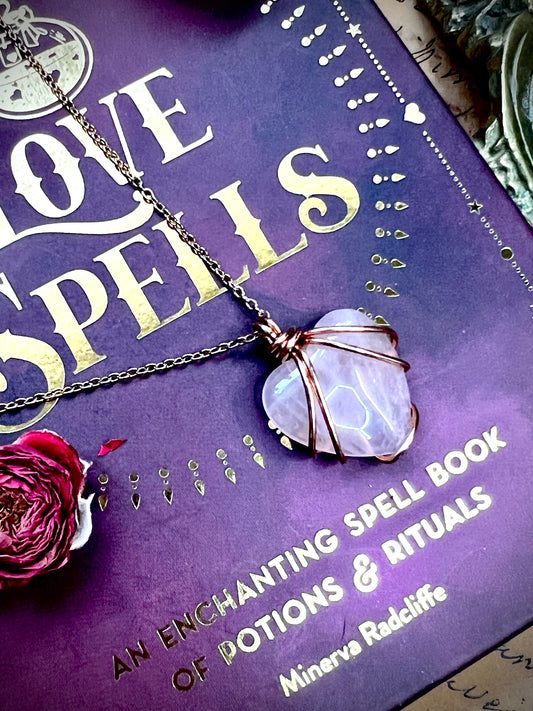 Love Rocks Copper Heart Wrapped Rose Quartz