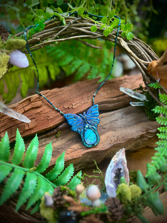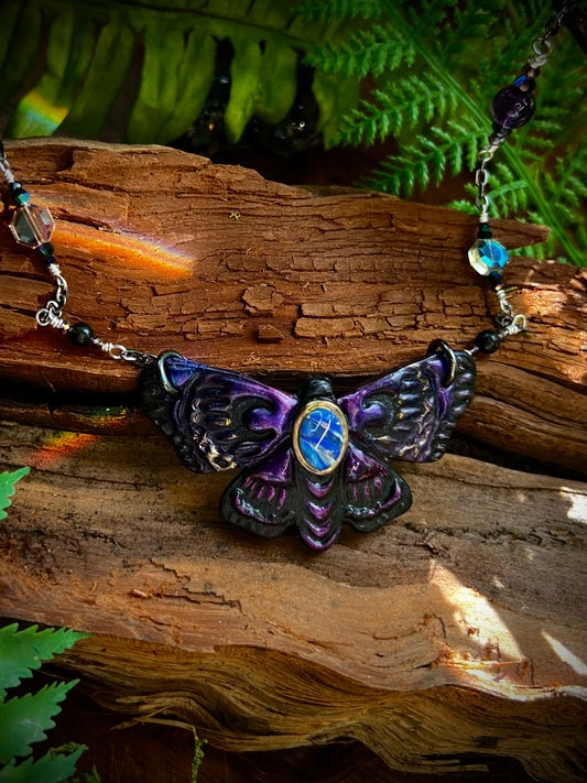 Moonlit Dreams Mythical Moth Opal Statement Necklace - Whimsy Goddess Forest Fairycore Iridescence Crystal Necklace SE77
