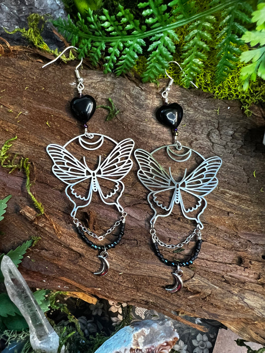 Black Agate Moon Moth Earrings for Mystical Protection and Transformation Mystik Bliss SE56
