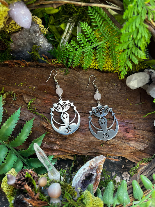 Rose Quartz and Clear Quartz Om Earrings β For Quiet Moments and Open Hearts Mystik Bliss SE41
