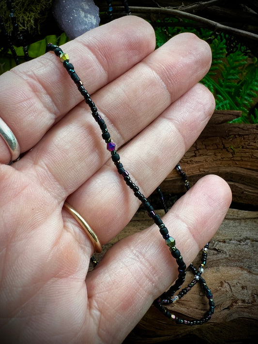 Iridescent Aurora Goddess Dainty Seed Bead Necklace Moonlit Dreams