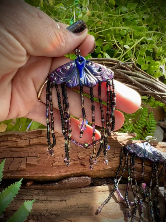 Moonlit Dreams Mythical Moth Iridescent Statement Earrings - Whimsy Goddess Forest Fairycore Iridescence Crystal Dangles SE85