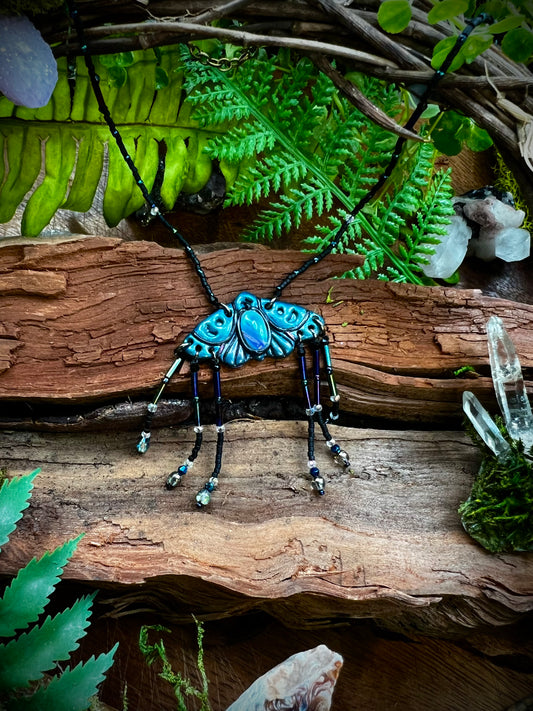 Moonlit Dreams Woodland Moth Opal Statement Necklace - Whimsy Forest Fairycore Beaded Crystal Necklace SE68