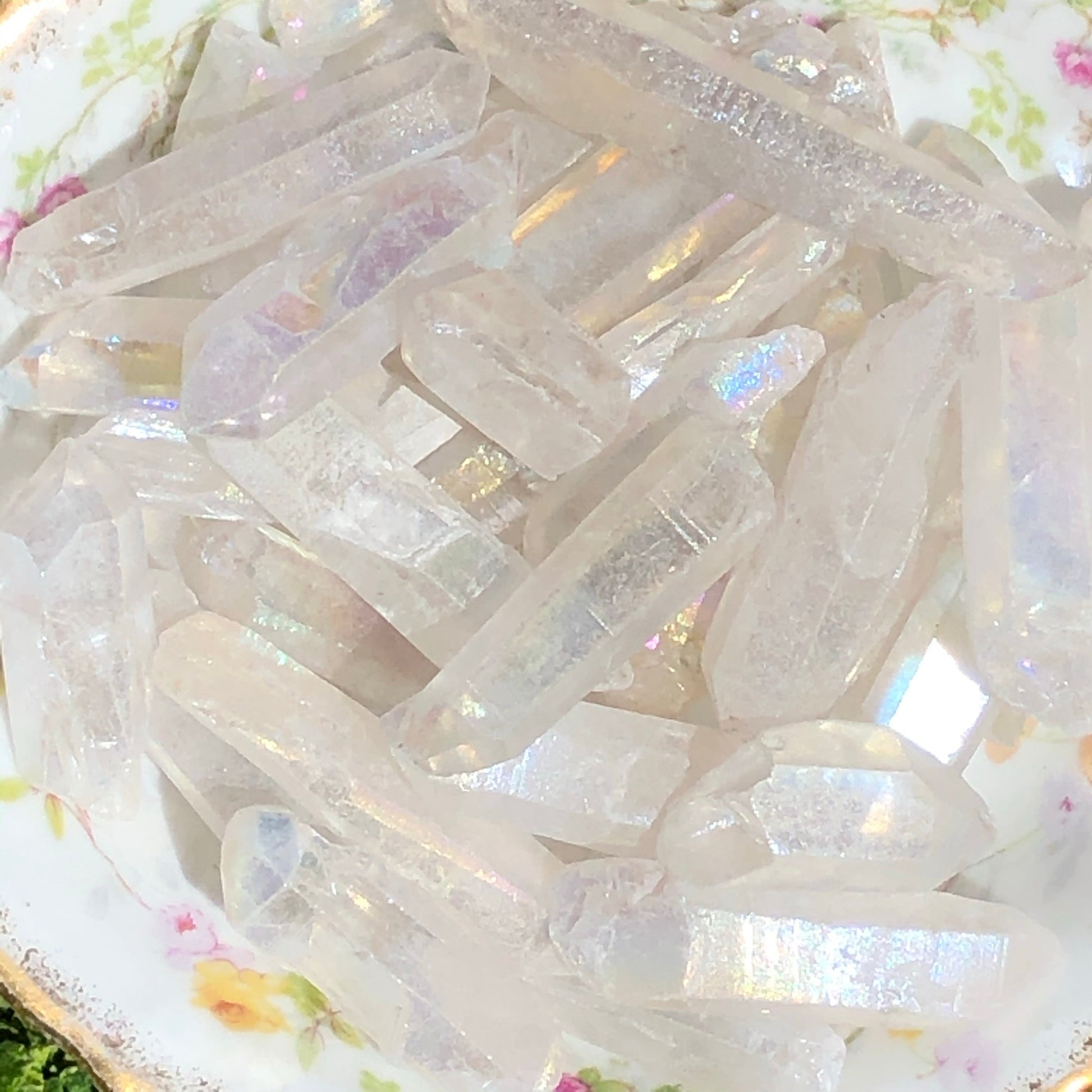 It is said that angel aura quartz is a bridge to channeling higher knowledge, remembering past lives and gaining insight into one’s spiritual mission in this lifetime.